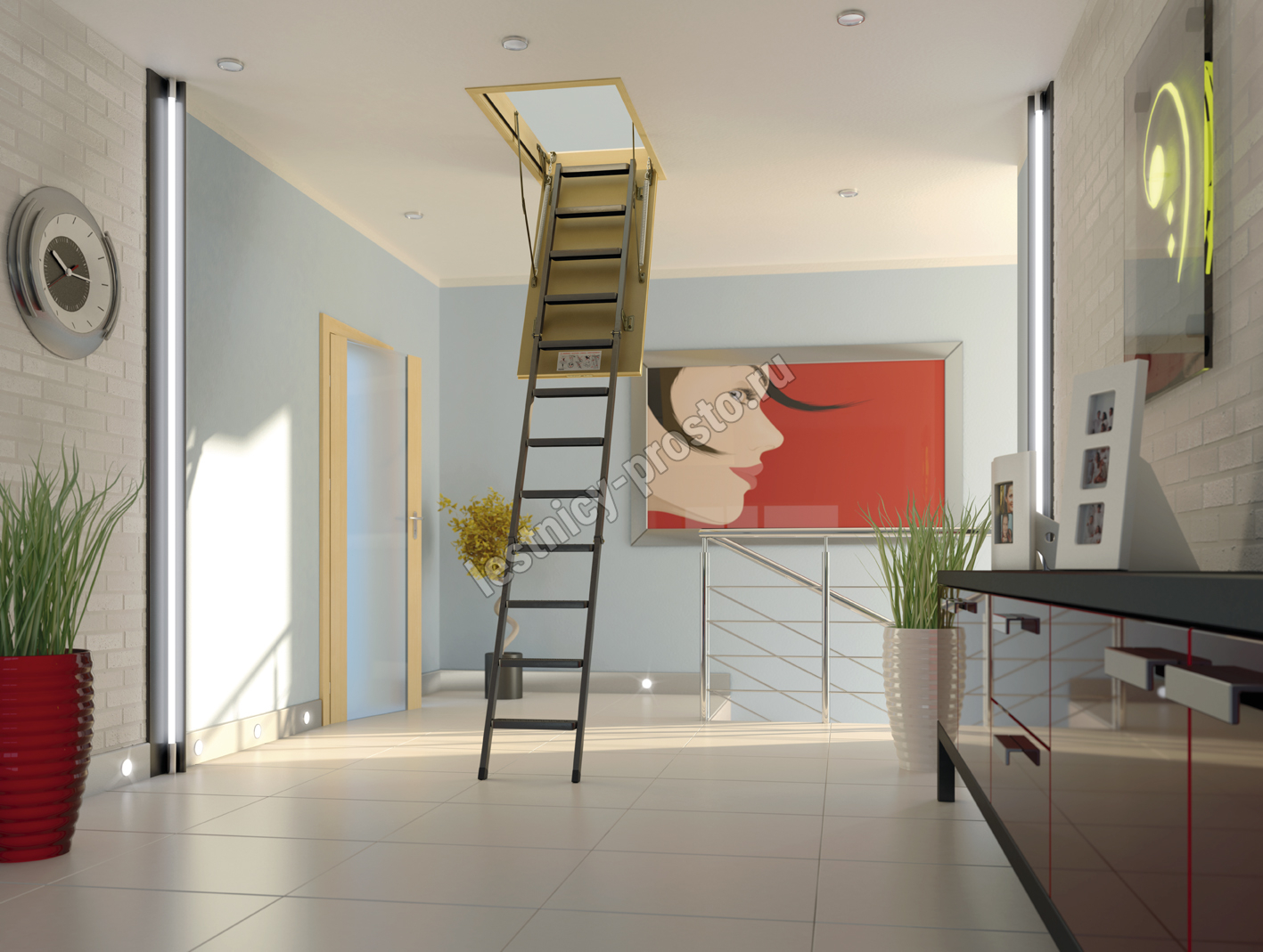 Чердачная металлическая лестница LMS – это надежная складная конструкция, состоящая из марша и термоизоляционной крышки, изготовленной из ДВП и окрашенной в бежевый цвет. Герметичность всей конструкции достигается благодаря утеплению крышки люка и контурному уплотнению по периметру, что предотвращает возможные теплопотери. Чердачную лестницу очень легко разложить и сложить благодаря наличию специального стержня с четырехугольной насадкой.