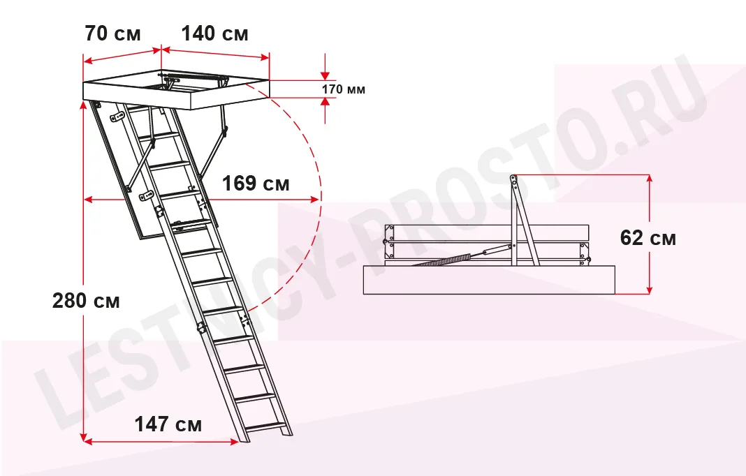 Чердачная лестница с люком OMAN POLAR 70х140 см, h-280 см