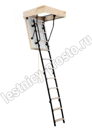 Термоизоляционная крышка имеет усиленную теплозащиту, облицована с двух сторон ДCП белого цвета. В комплекте деревянный стержень для открывания, металлический поручень и защитные накладки на ножки. Лестница идеальна для прохода на холодный чердак.