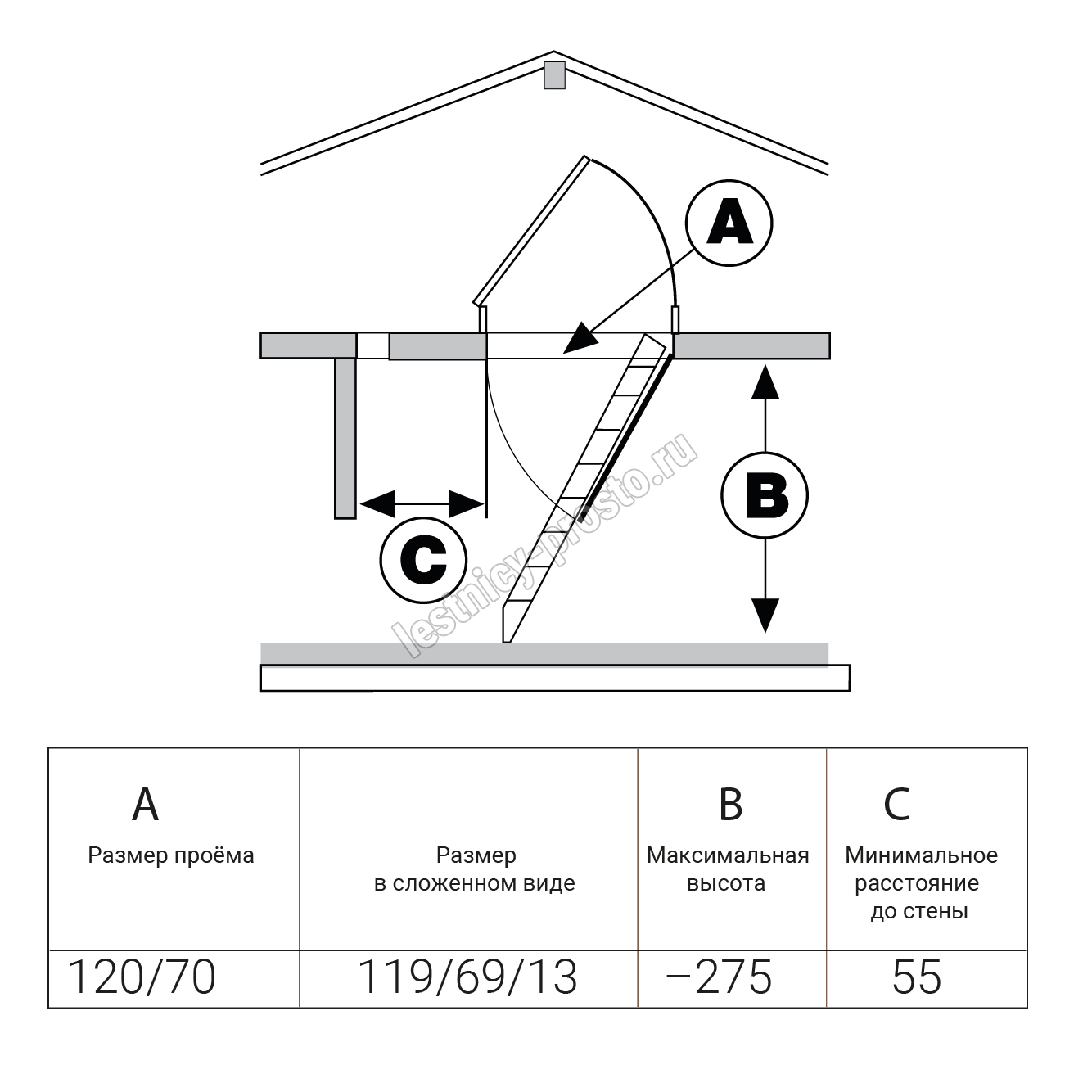 Высота лестницы 2750 мм
