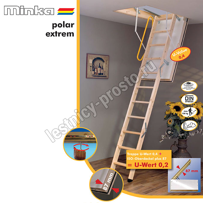 Чердачная складная лестница MINKA POLAR EXTREM 120×70 см, h-280 см