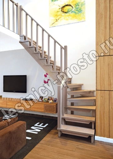 Деревянная межэтажная лестница ЛЕС-09 2900 проем 2580-900, Сосна