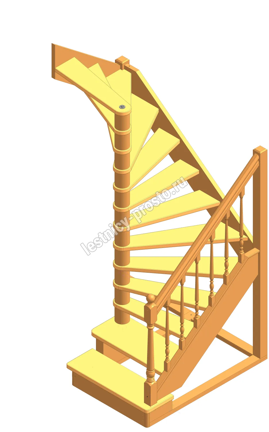 Базовый комплект включает в себя деревянные элементы лестницы без какого-либо покрытия. Лестница поставляется в разобранном виде.