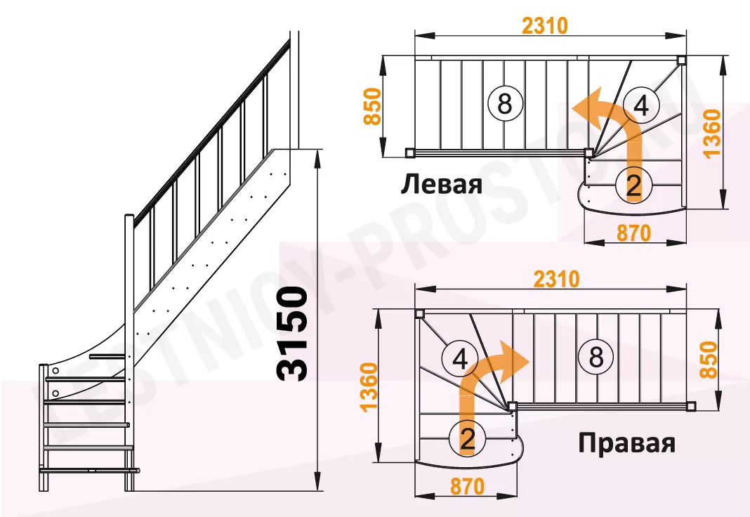 Возможные проемы 2310 × 870, 2130 × 870 мм