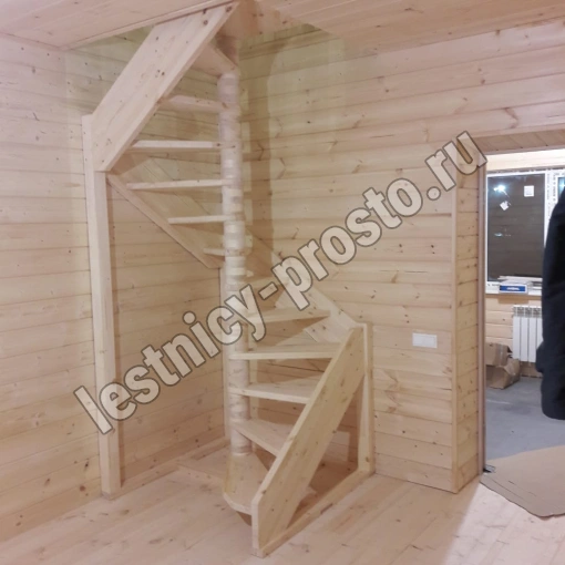 Небольшая аккуратная лестница, хорошо подойдет для помещения с небольшим проемом, поможет сэкономить пространство и организовать комфортный подъем на уровень выше. Возможны варианты лестницы из сосны под покраску, сосны, дуба, бука или ясеня. Для увеличения срока эксплуатации мы рекомендуем покрыть элементы лестницы защитным средством. Вы можете сделать это самостоятельно или заказать предварительное покрытие необходимым средством (или тонирование) в нашем цеху.