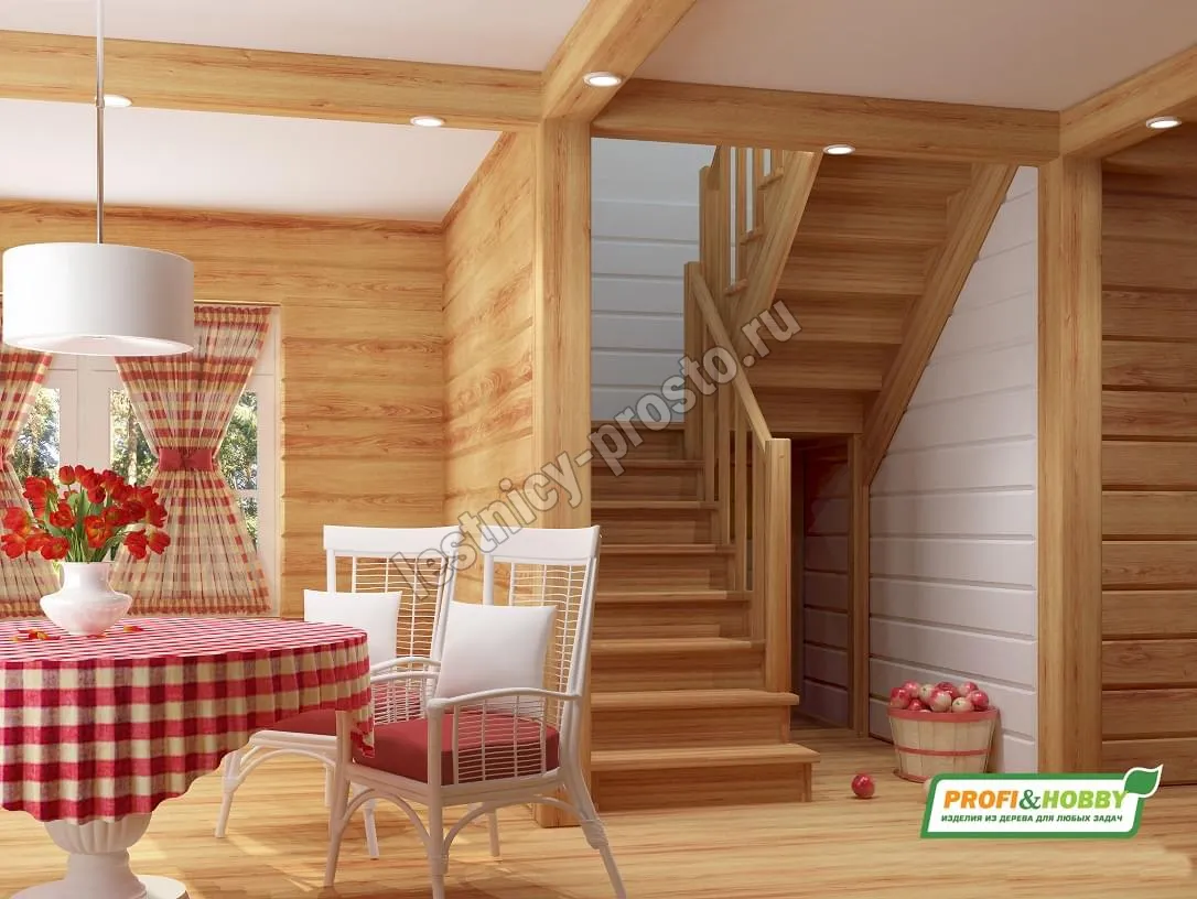 Ступени и поручень лестницы выполнены из бука, остальные элементы из сосны.