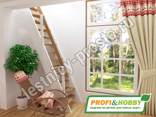 Ступени и поручень лестницы изготовлены из бука, остальные элементы из сосны.