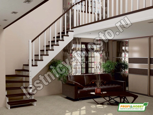 Цена указана за лестницу с дубовыми ступенями и поручнем, остальные элементы - сосна. Возможно изготовление этой лестницы целиком из дуба. Базовый комплект включает в себя деревянные элементы лестницы и ограждения без какого-либо покрытия.