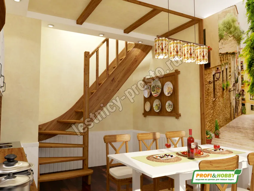 Ступени и поручень лестницы изготовлены из дуба, остальные элементы из сосны.