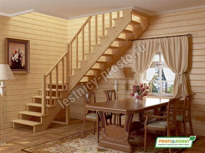 Базовый комплект включает в себя деревянные элементы лестницы и ограждения без какого-либо покрытия.