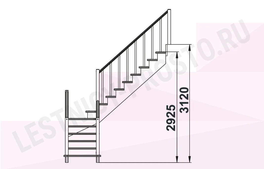 Базовый комплект включает в себя деревянные элементы лестницы и ограждения без какого-либо покрытия.