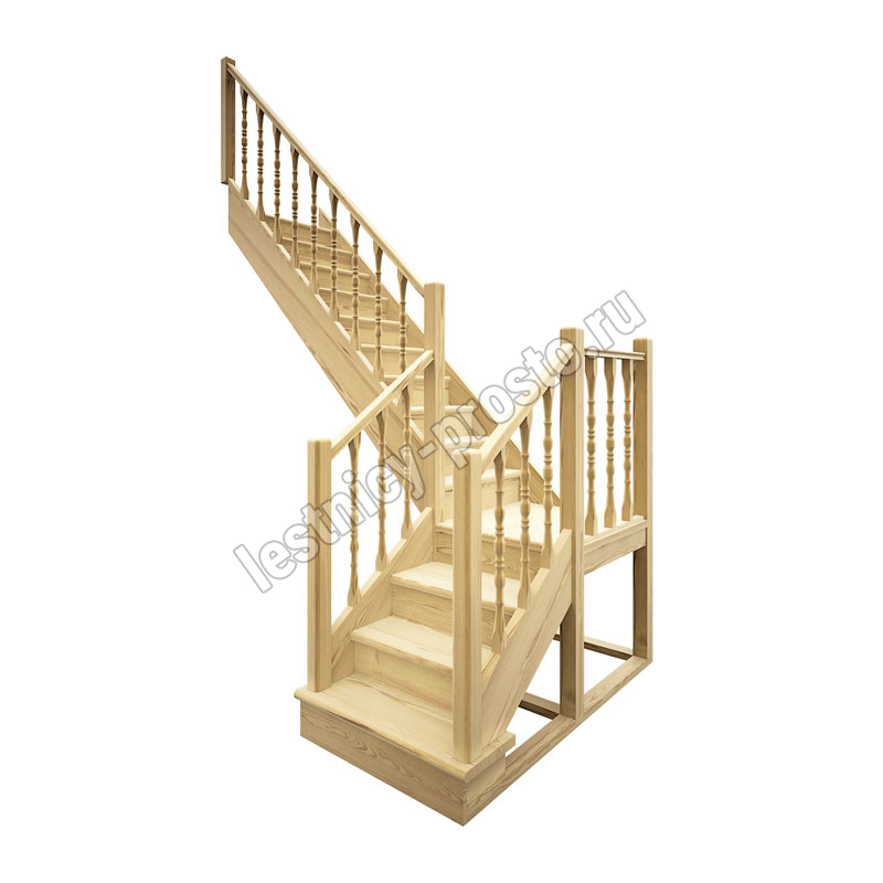 Лестница поставляется в разобранном виде, упакованной в два ящика. Базовый комплект включает в себя деревянные элементы лестницы, подступенки и ограждения без какого-либо покрытия.