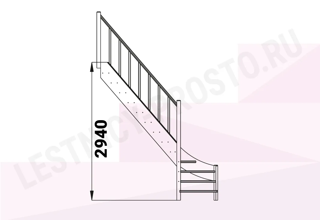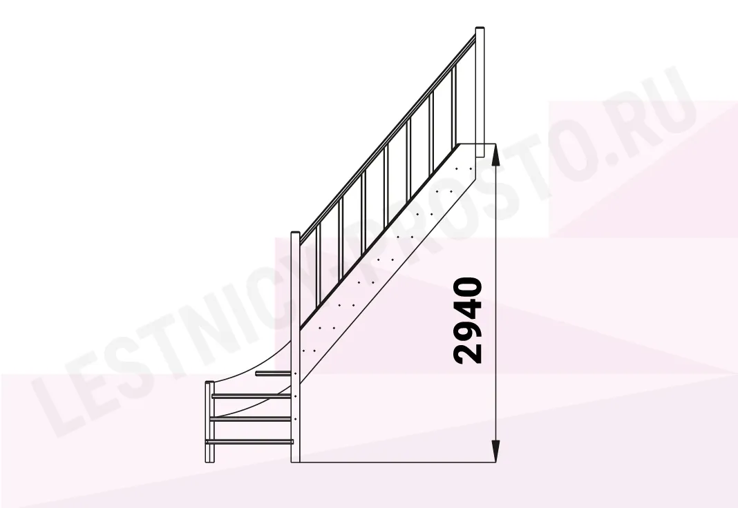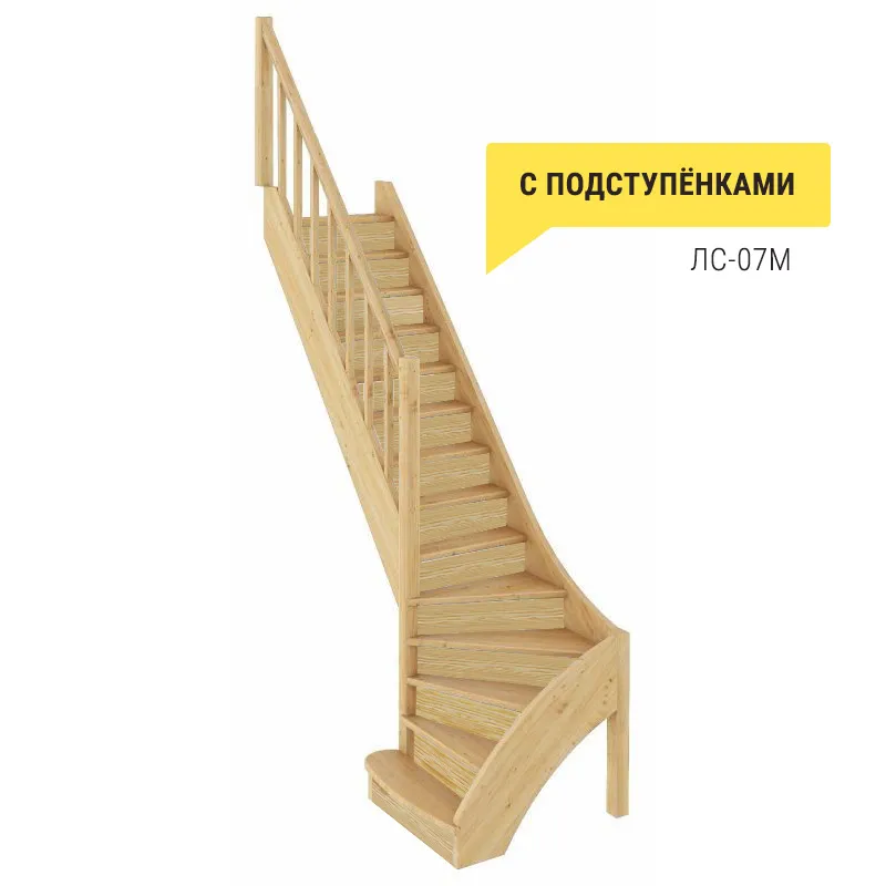 Лестница из сосны ЛС-07М/1 с подступёнками под покраску