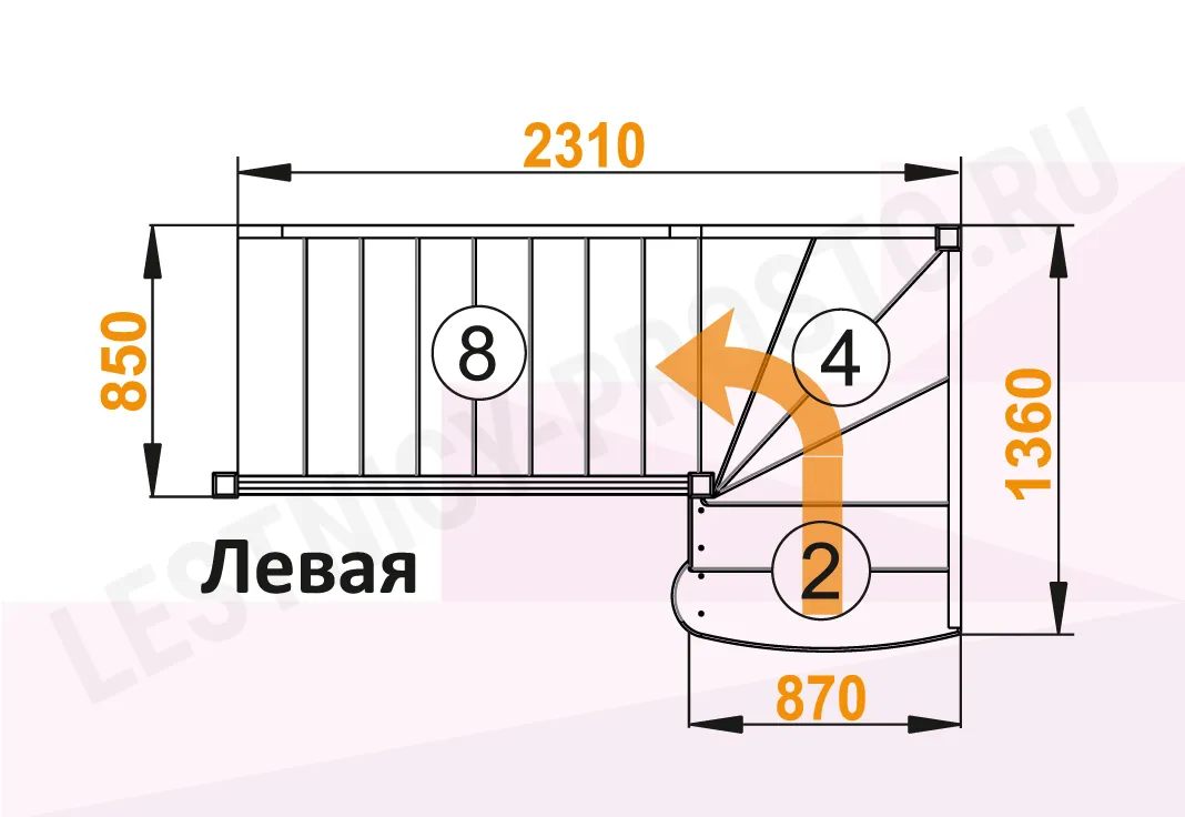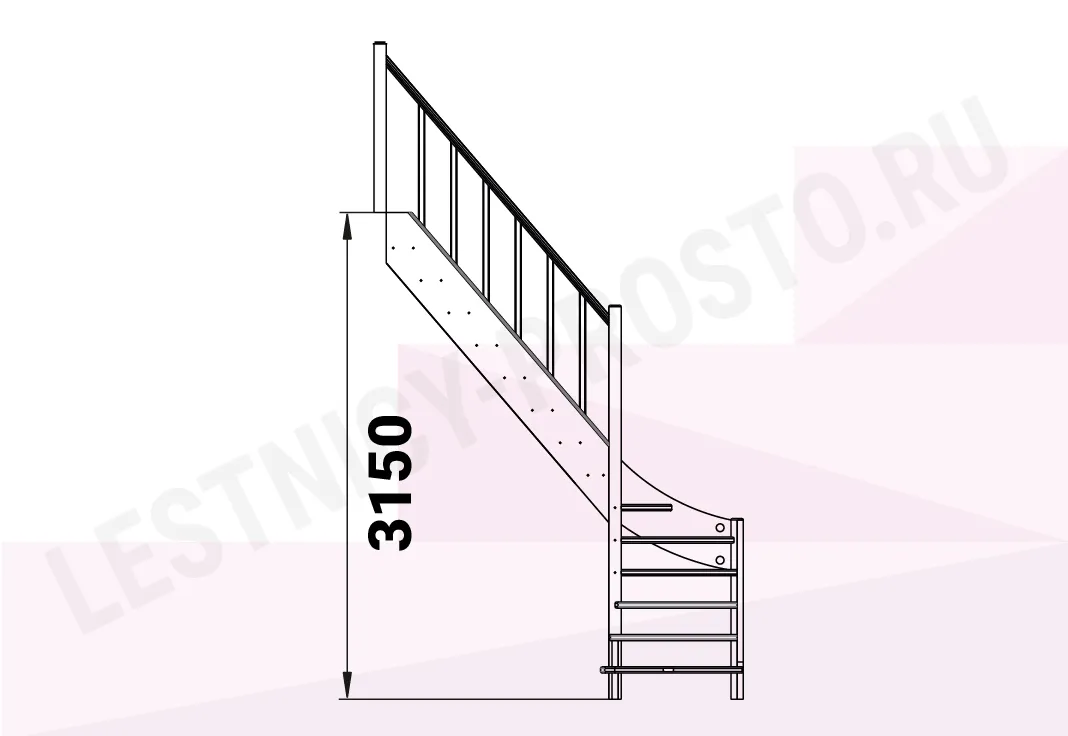 Базовый комплект включает в себя деревянные элементы лестницы с подступенками и ограждения без какого-либо покрытия.