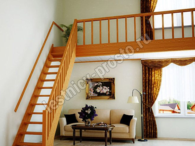 Базовый комплект включает в себя деревянные элементы лестницы и ограждения без какого-либо покрытия. Ограждение можно установить справа или слева.