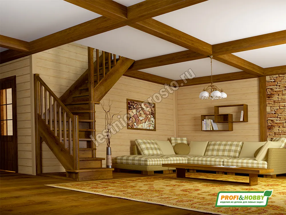 Базовый комплект включает в себя деревянные элементы лестницы с подступенками и ограждения без какого-либо покрытия.