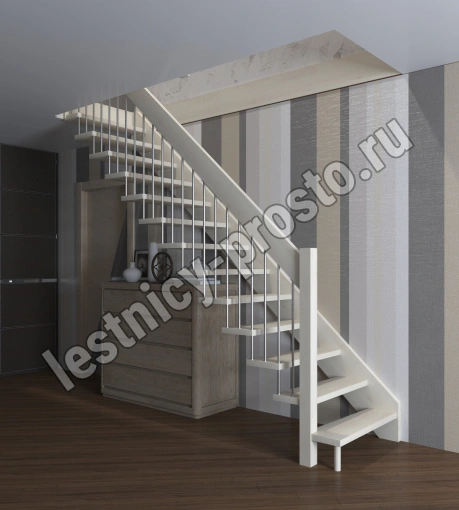 Надёжная современная лестница выполнена по немецкой технологии. Стоимость указана для лестницы с ограждением (с одной стороны); Поставляется в разобранном виде, в комплекте необходимый крепёж; Лестницу можно собрать самостоятельно; Так же, вы можете заказать услугу монтажа нашими специалистами; 4 вида породы дерева для изготовления лестницы: сосна, бук, ясень, дуб; возможна комбинированная лестница: из сосны (ступени бук, ясень, дуб); Деревянные элементы без какого-либо покрытия, отшлифованы, готовы к покраске. За дополнительную плату, вы можете изменить любые параметры, а именно: увеличить глубину ступени; увеличить ширину марша до 900 мм. и выше; заказать подступенки к лестнице; заказать отделку перекрытия (между 1-м и 2-м этажами); изготовить дополнительный промежуточный марш; заказать ограждение 2-го этажа; покраска в любой цвет или несколько цветов или покрытие защитными средствами; дополнение балясины из нержавеющей стали деревянными элементами; покраска балясин из нержавеющей стали порошковой краской в цвет RAL.