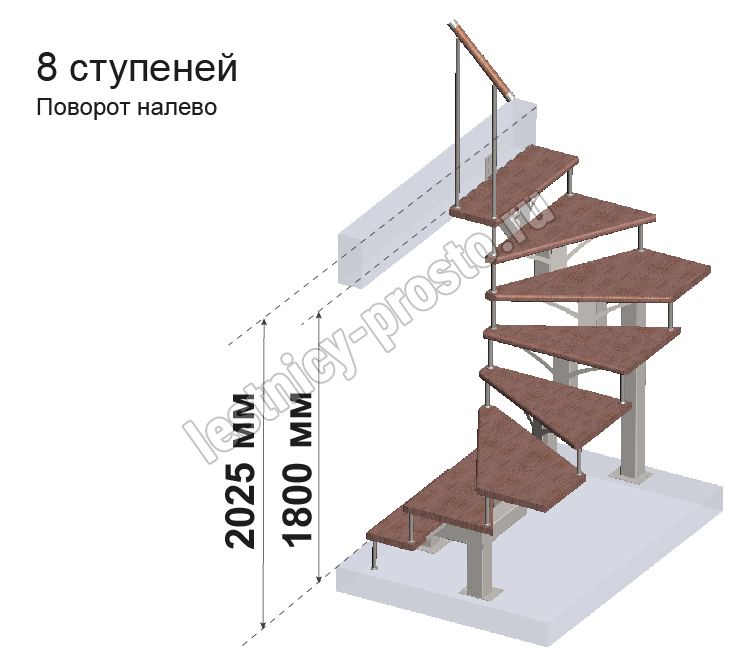 Комплект ограждений для П-образной лестницы MONO h202.5 из 8 ступеней.
