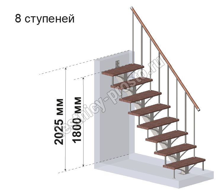 Комплект для лестницы на металлокаркасе PROSTO MONO из 8 ступеней.