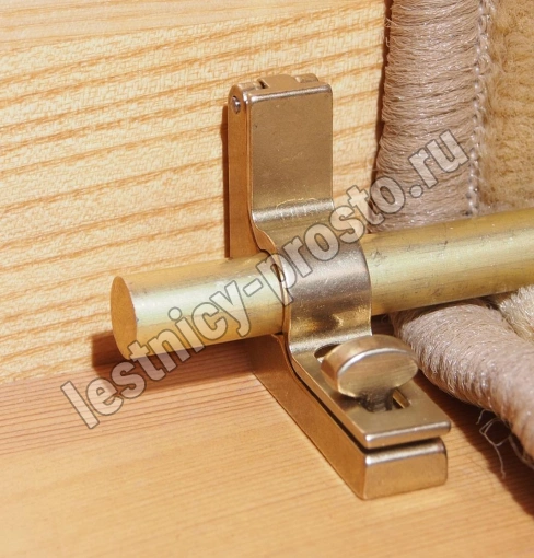 Ковродержатель комплектуется двумя держателями из латуни цвета золото, а также цельным прутком из латуни длиной от 201 до 250 см. Конструкция является сборно-разборной не требующей демонтажа креплений, что делает ее долговечной и очень удобной для чистки ковров и ковровых покрытий.