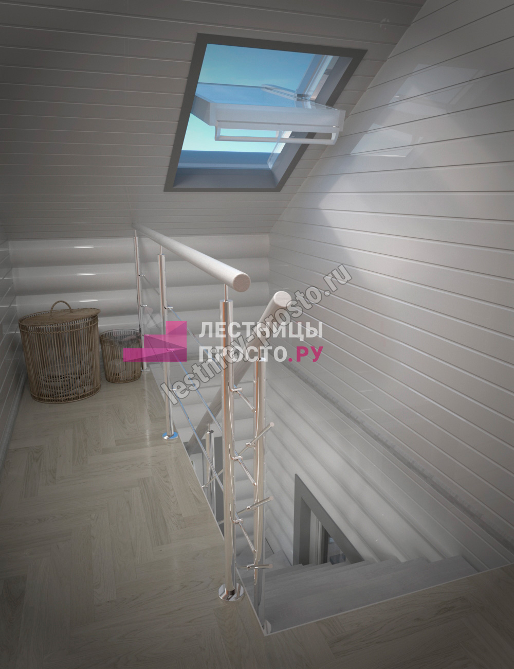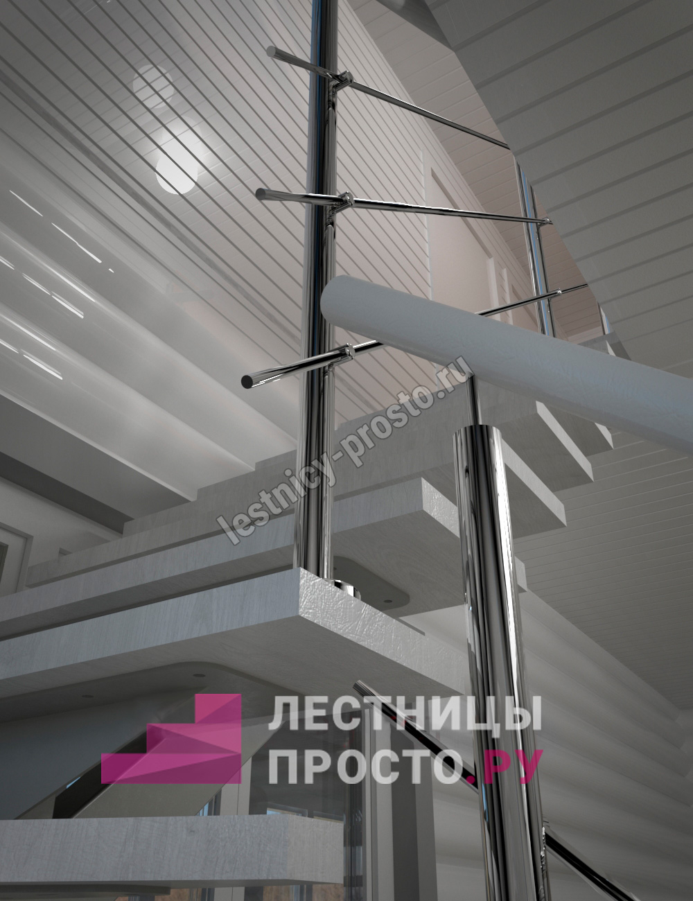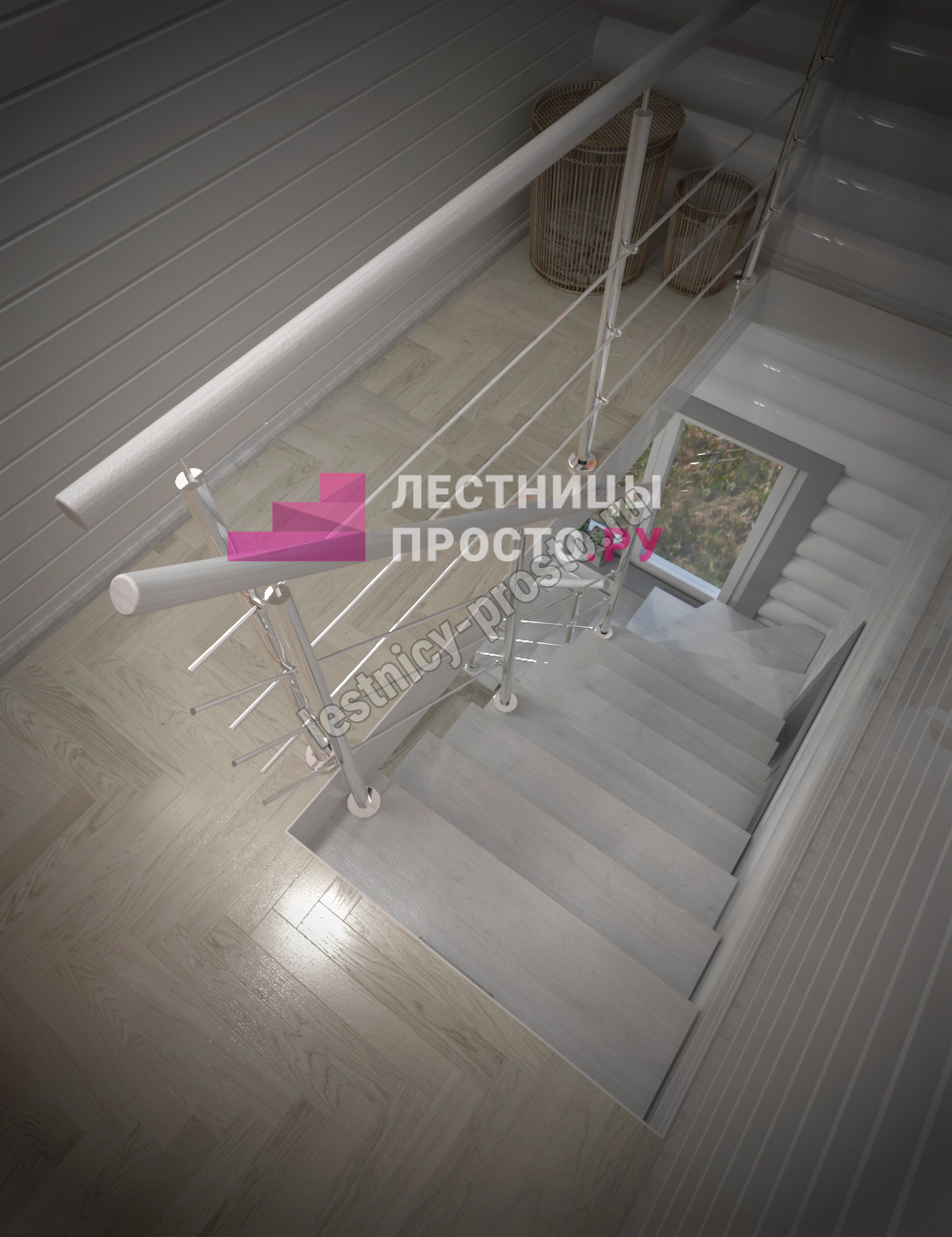 Каркас лестницы PROSTO MONO STEP TRINITY г-образная забежная с ограждением