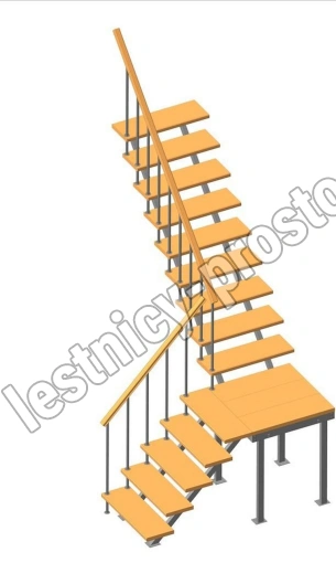 Универсальная лестница на металлическом каркасе с поворотной площадкой. Идеально дополнит любой интерьер, имеет современный вид и удобна в использовании. Монтаж осуществляется силами двух человек на объекте по указаниям, приведенным в паспорте на лестницу.