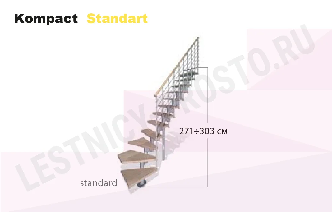 Красивая комфортная лестница с уникальной модульной конструкцией, которая позволяет собрать большое число модификаций, подходящих под ваш проём и другие условия помещения. Возможные варианты сборки лестницы смотрите в блоке "чертежи и схемы". При монтаже модульной лестницы KOMPACT, вы можете варьировать высоту шага и проступь, получив точную необходимую высоту и габариты. Лестница KOMPACT возможна в двух вариантах: с шириной марша 740 мм и 890 мм. Ступени выполнены из массива бука и покрыты качественным износостойким лаком. Базовая комплектация позволяет получить лестницу под высоты этажа в диапазоне 2250 - 3030 мм, кроме того, установив дополнительный комплект увеличения высоты, можно поднять высоту лестницы до 3730 мм. Каркас и стойки ограждения выполнены из пластифицированного металла.