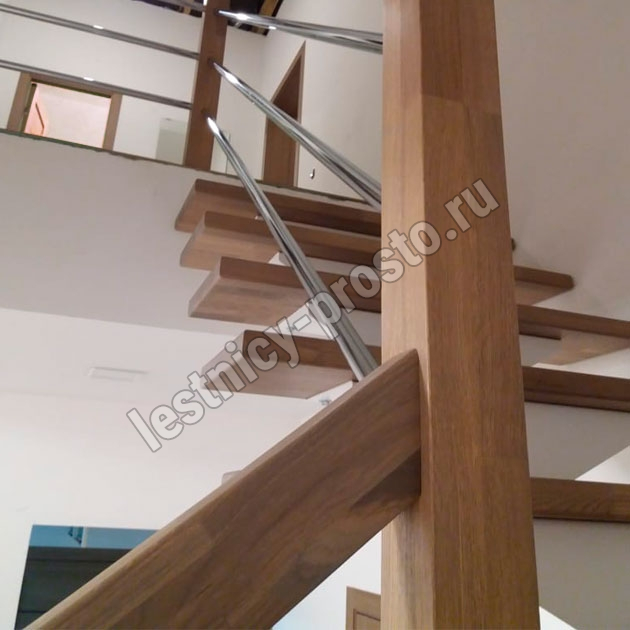 Ступени лестницы изготовлены из лиственницы категории А/В паркетной склейки без какого-либо покрытия. Вы можете заказать у нас предварительную профессиональную покраску деревянных элементов материалами БИОФА в широкий спектр цветов (стоимость зависит от количества ступеней).