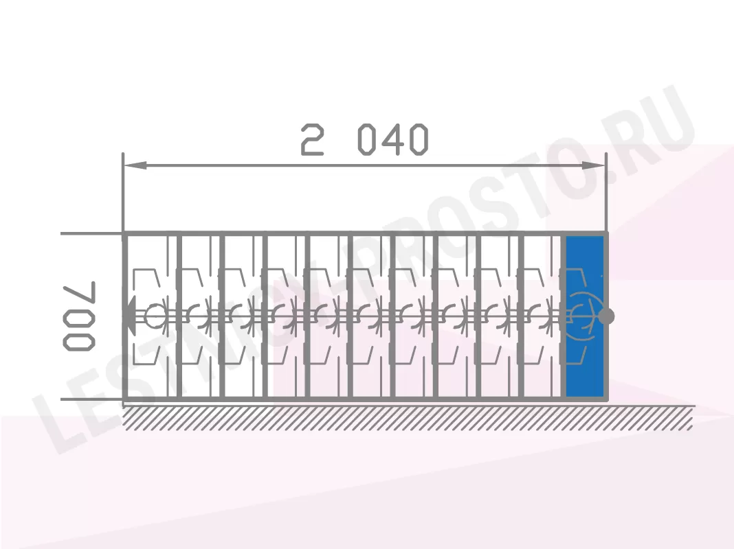 Лестница на стальном модульном каркасе. Высота лестницы регулируется при сборке засчет регулировки высоты шага. Ступени покрыты защитным лаком. Ограждение из стали с пластиковым поручнем. В комплект входят перила с вертикальными стойками и горизонтальными перегородками. Изделие поставляется с шурупами (кроме потолочных и напольных анкеров), инструкциями по монтажу и эксплуатации и гарантией. Внимание! Для этой лестницы необходимо крепление к стене.