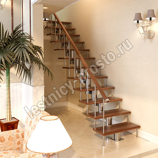 Каркас лестницы представляет собой набор модулей, которые комплектуются уже готовыми к монтажу.