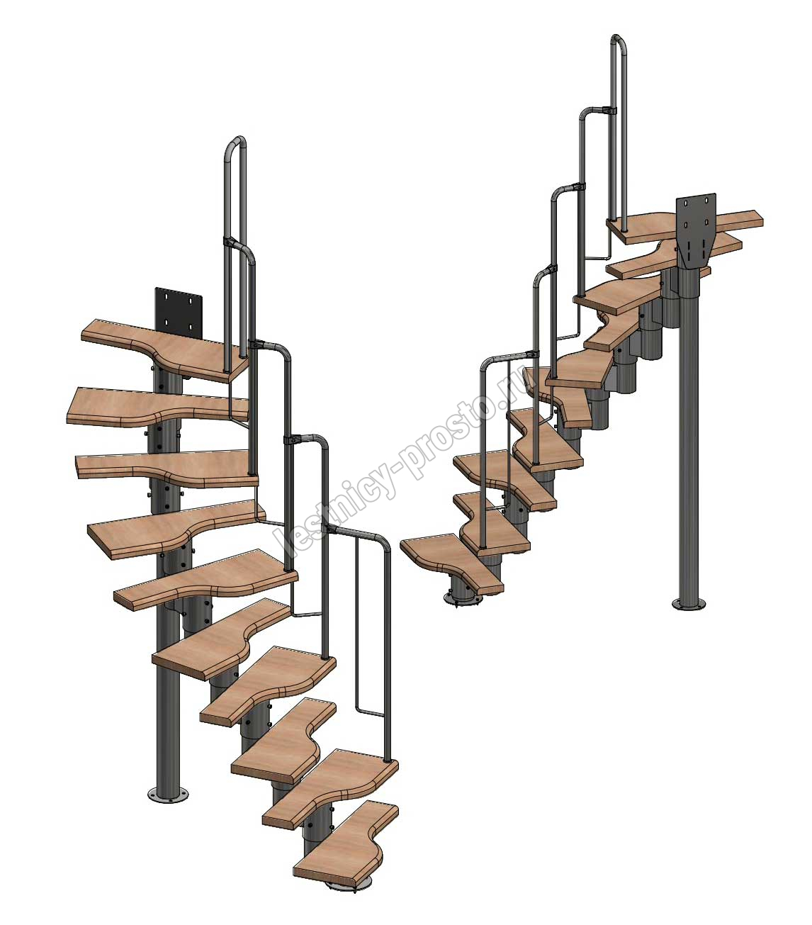 Лестница Prosto Urban Black гусиный шаг 700 мм, h180-264 см (10 ступеней), бук