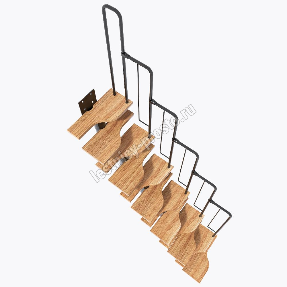 Лестница Prosto Urban Black гусиный шаг 700 мм, h234-336 см (13 ступеней), берёза мультиплекс