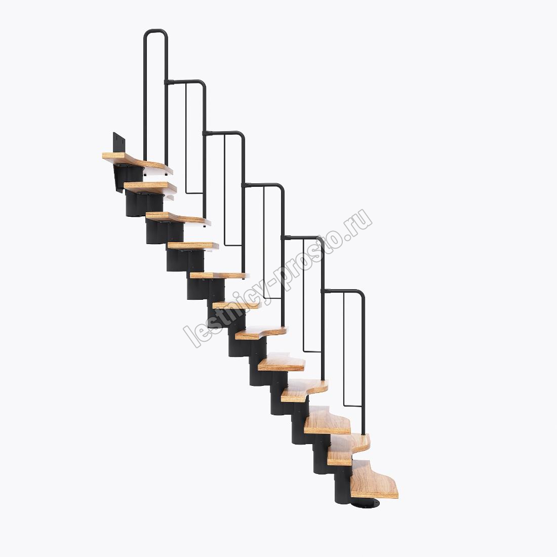 Лестница Prosto Urban Black гусиный шаг 600 мм, h198-288 см (11 ступеней), ясень