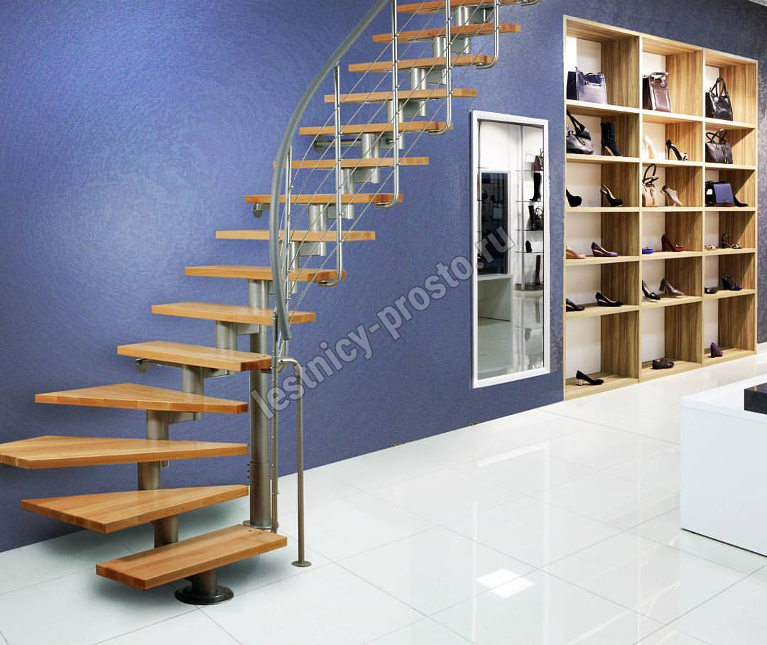 Модульная лестница DIXI PLUS серебро, светлый бук