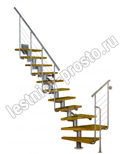 Есть возможность регулировать высоту ступеней. В комплект входят перила с вертикальными стойками и горизонтальными перегородками.