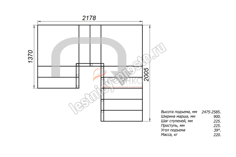 Модульная лестница Комфорт 225 2475-2585, Белый, Сосна, Крашеная, Без Ступений