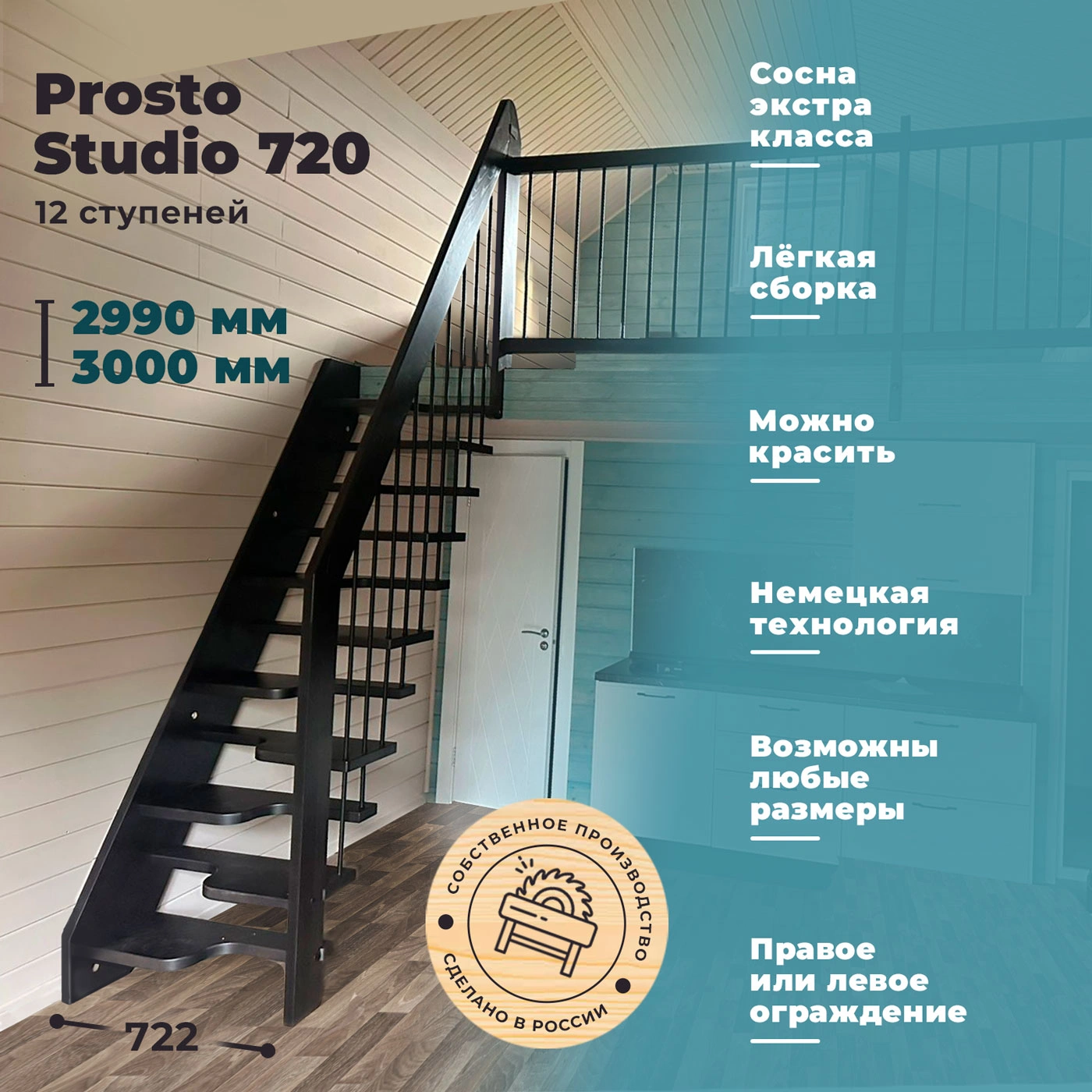 Модульная лестница Комфорт 225 3150-3290, Черный, Бук, Нержавеющая сталь