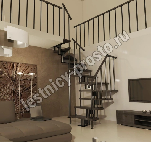 Каркас лестницы представляет собой набор модулей, которые комплектуются уже готовыми к монтажу.