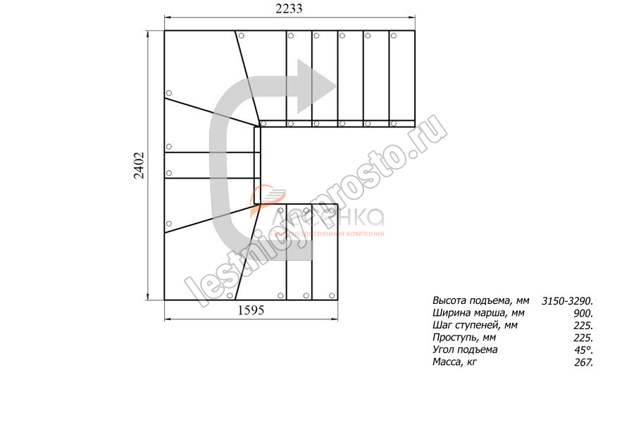 Высота лестницы 3150 - 3290 мм