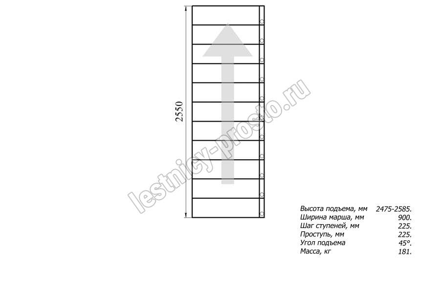 Модульная лестница Стандарт 2475-2585, Черный, Сосна, Нержавеющая сталь