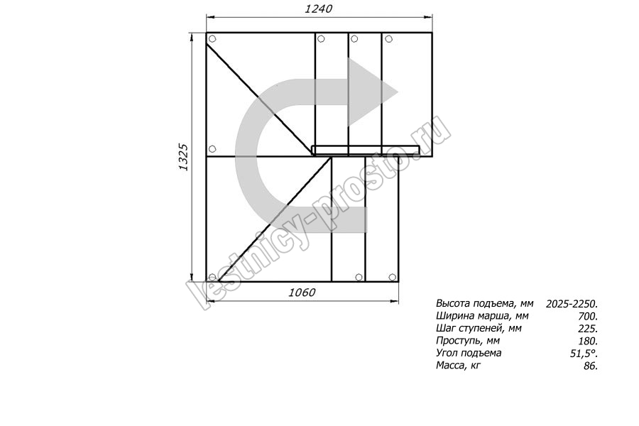 Модульная малогабаритная лестница Эксклюзив 2025-2250, Серый, Сосна, Крашеная, Без Ступений
