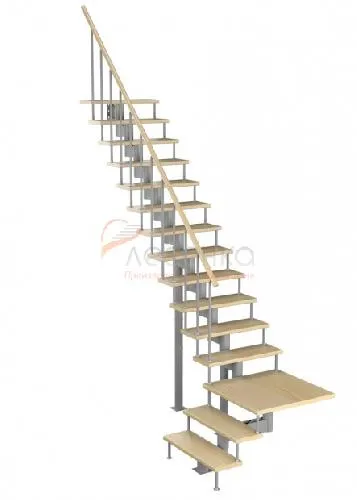 Модульная малогабаритная лестница Компакт 2250-2475, Серый, Сосна, Крашеная