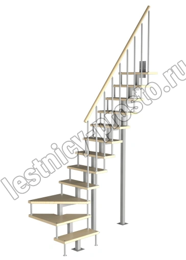 Модульная малогабаритная лестница Компакт 2700-2925, Серый, Сосна, Нержавеющая сталь