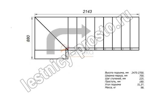 Количество ступеней на первом и втором марше может меняться между собой в зависимости от размера проема, при этом общее количество ступеней не меняется!!!