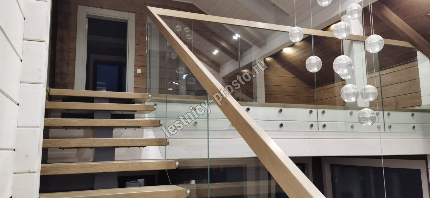 Стеклянная лестница из ясеня LP-2935 с металлическим каркасом