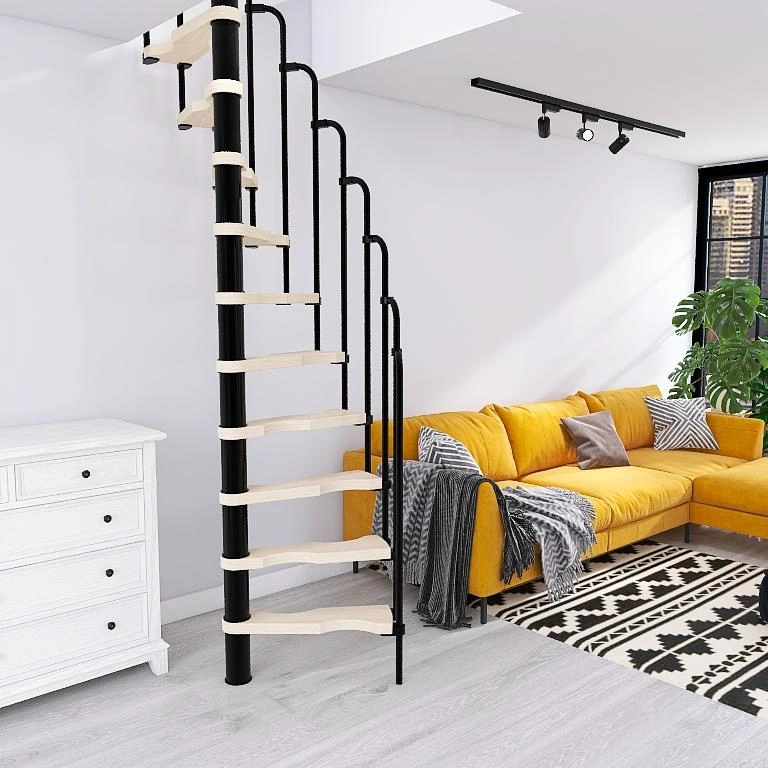 Занимает минимум места и при этом обеспечивает комфортный подъём на верхний уровень квартиры или дома.