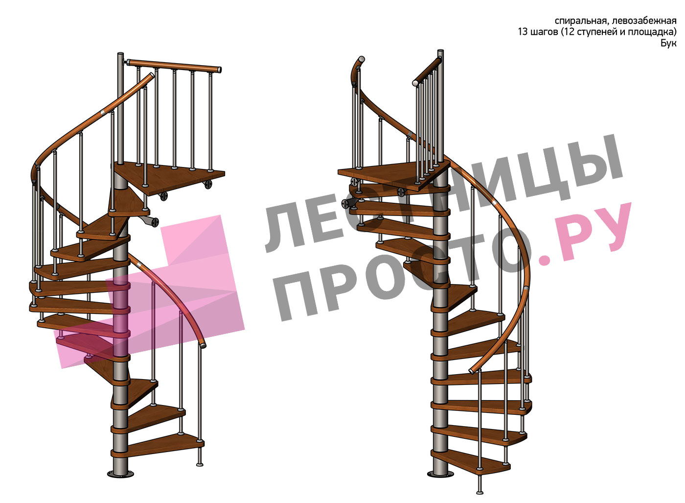 Винтовая лестница Prosto Spiral Black D160см, h282.2-326,3 см, бук