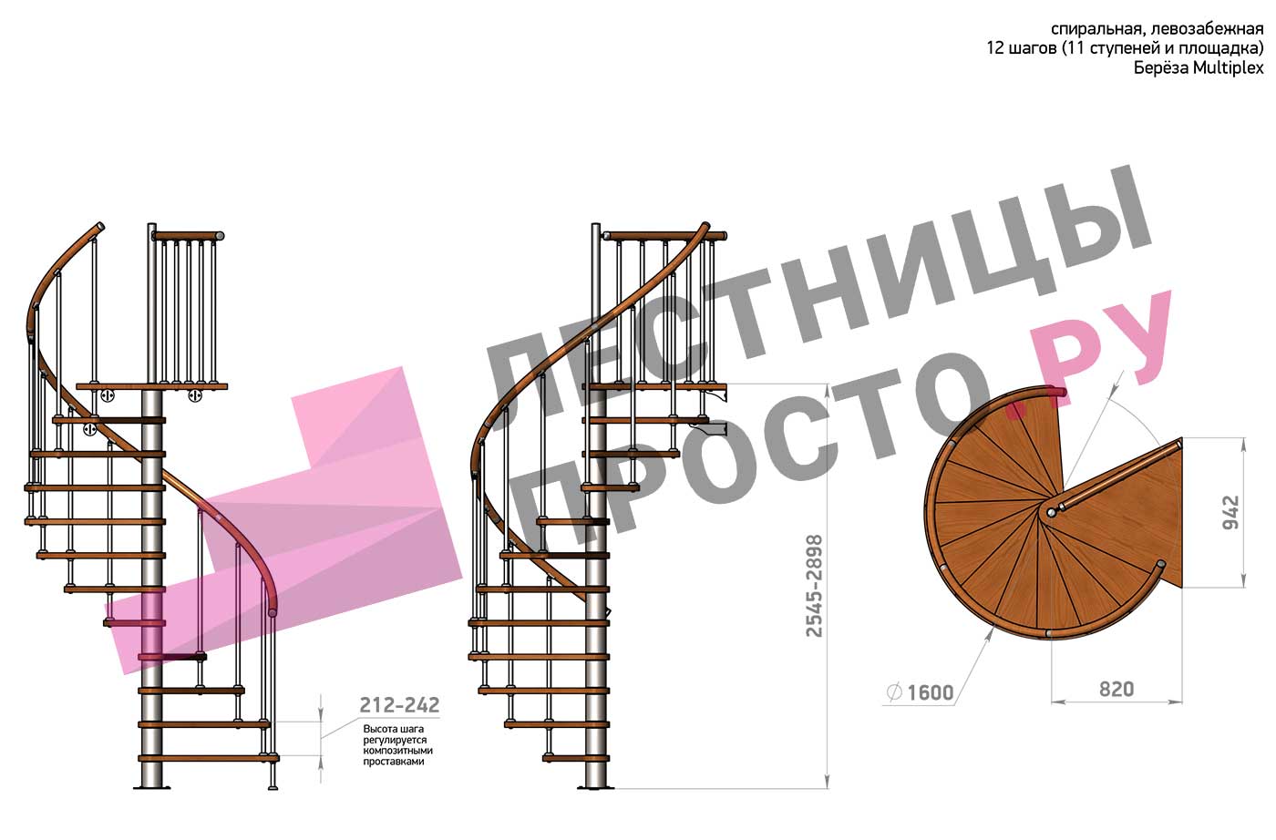 Винтовая лестница Prosto Spiral Black D160см, h275.7-313.9 см