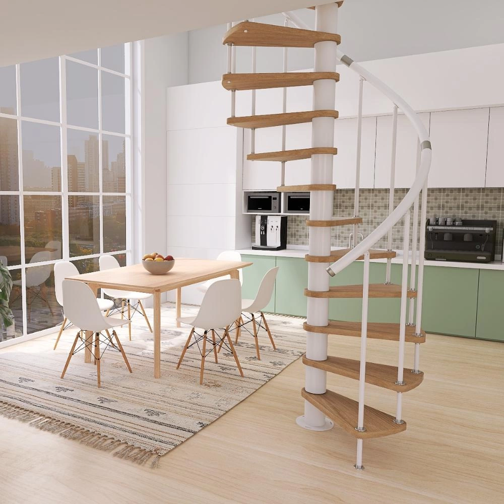 Винтовая лестница Prosto Spiral White D120см, h260.5-304.6 см, бук