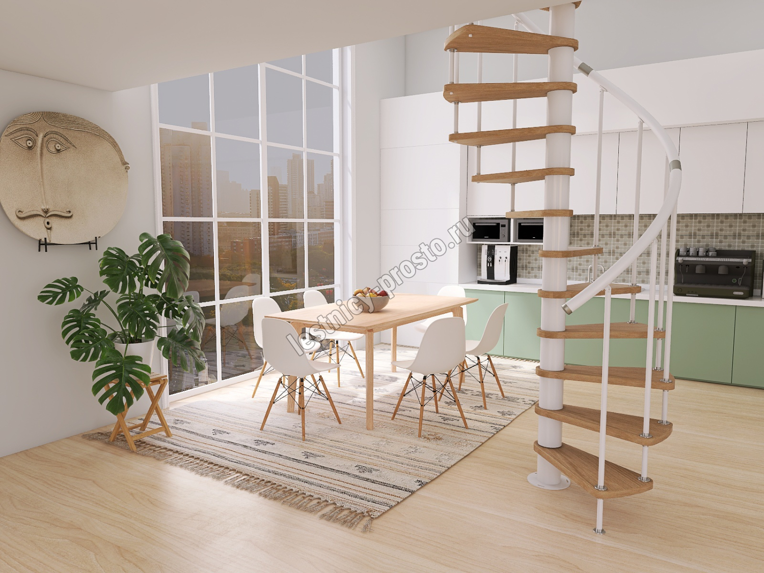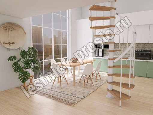 Винтовая лестница Prosto Spiral White D140см, h260.5-304.6 см, бук